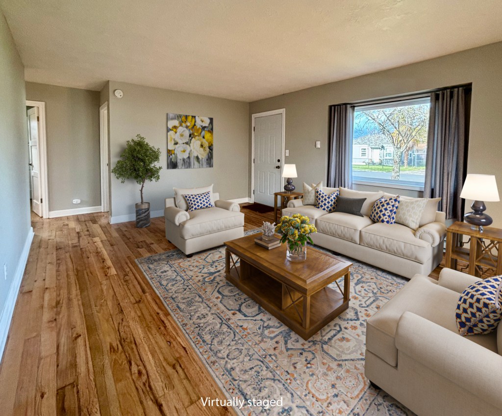 This lovely home has so much to offer. The manicured backyard provides for privacy and a space to lounge, garden, and enjoy the sun. The thoughtful layout lives large with an expansive living area of approximately 13×16. With closets in each bedroom, and an additional one in the hallway between bedrooms, there is excellent storage throughout. The utility room has a washer and dryer combination for convenience with room for supplies, and all kitchen appliances are included as well. Please contact your agent or the number below for more information.